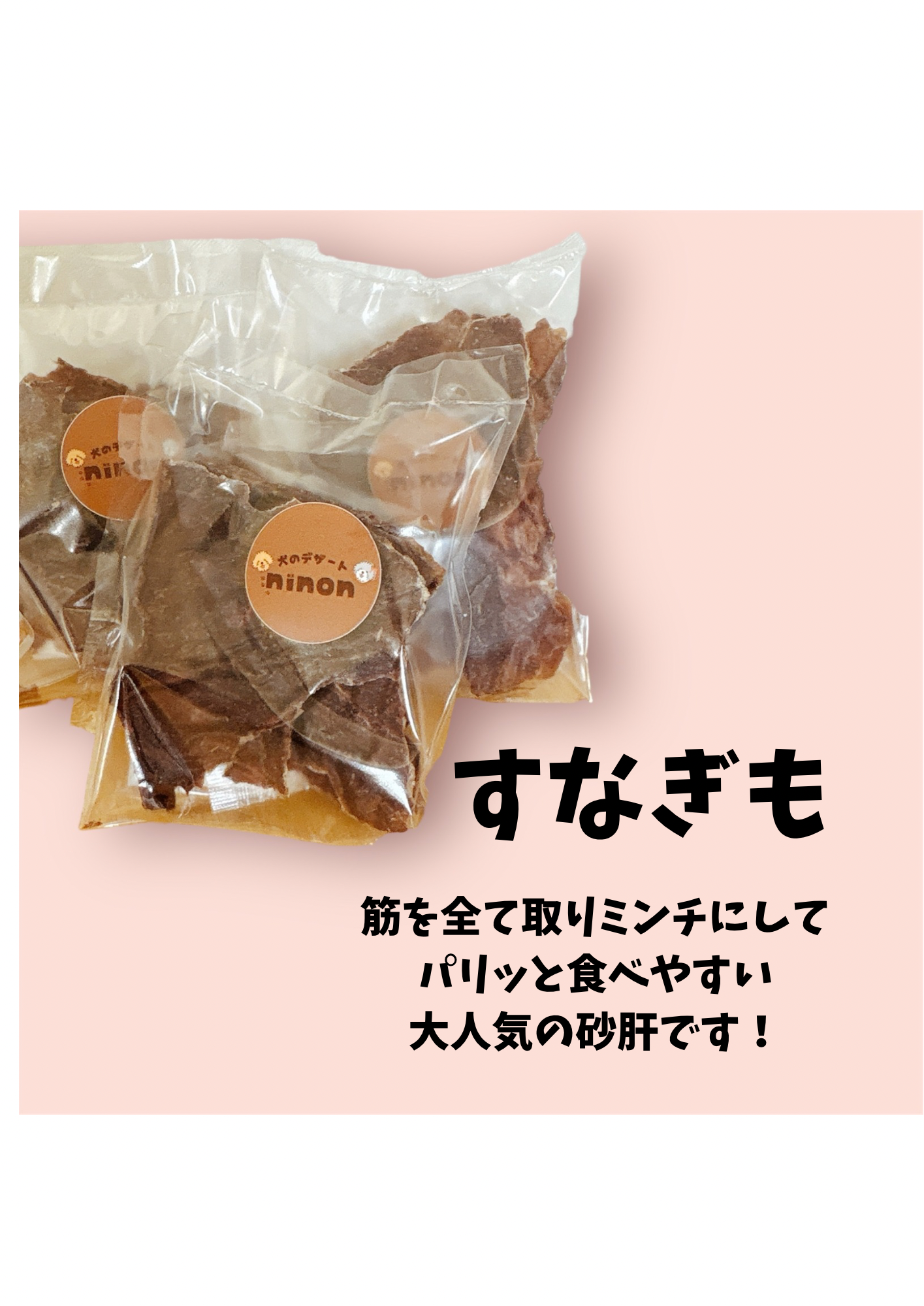 砂肝は、厳選された国産の素材を使用し、オーナーが丁寧に手作りしています。保存料や添加物は一切使っていないため、安心して与えていただけます。