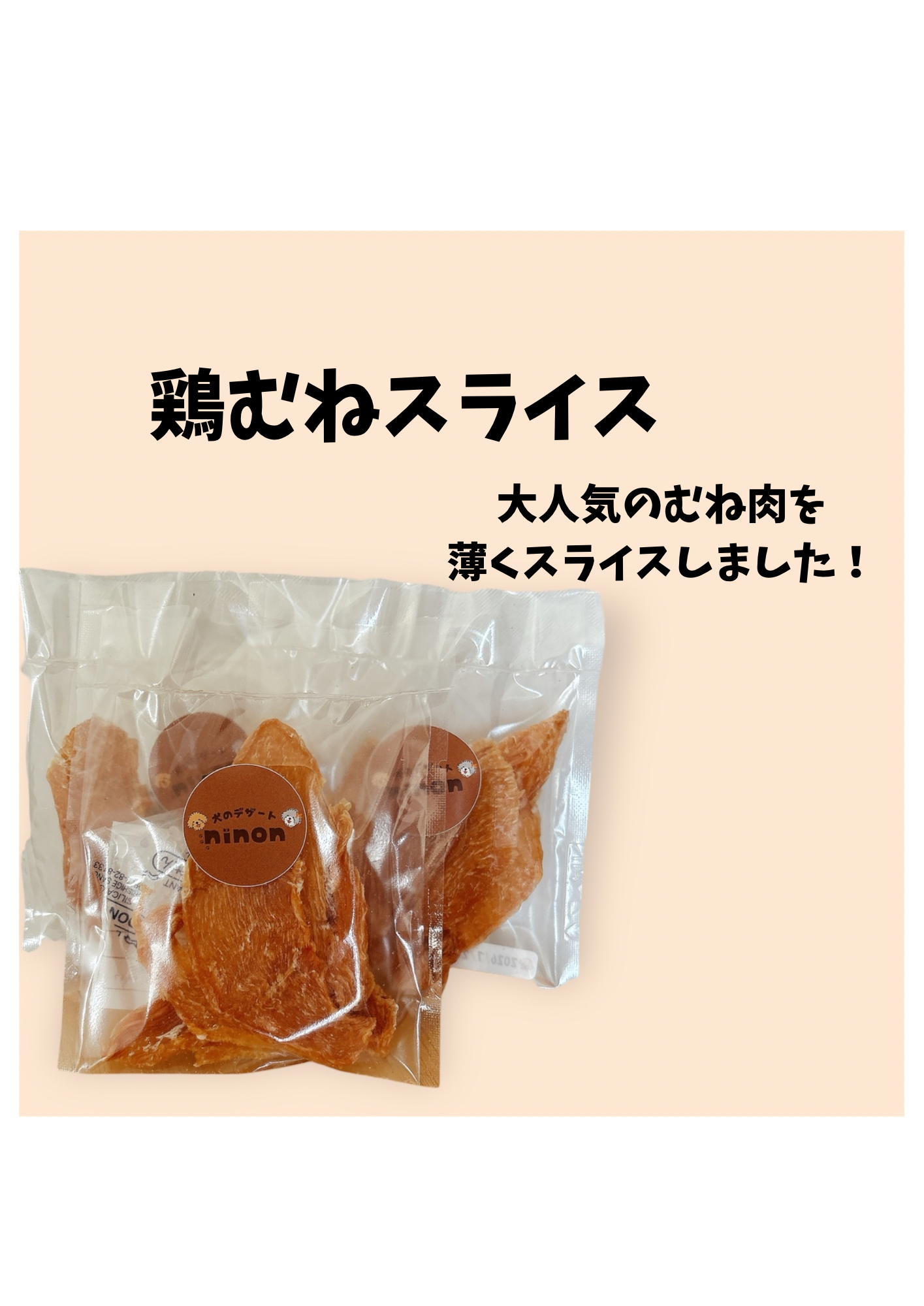 鶏むねスライスは、厳選された国産鶏胸肉を使用し、オーナーが心を込めて手作りしています。保存料や添加物は一切使用していないため、安心して与えることができます。