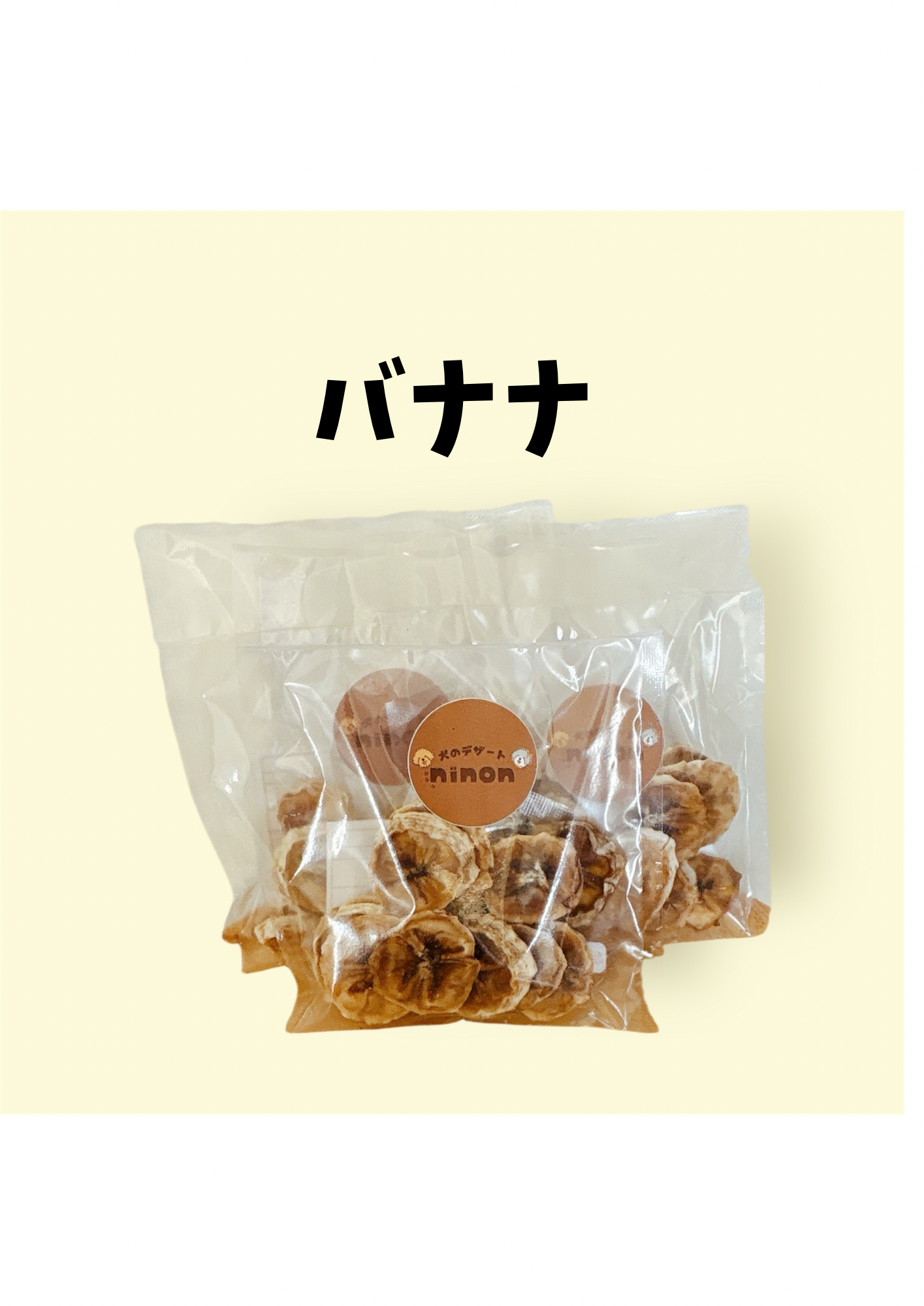 ばななは、あなたの愛犬のためのおやつとして理想的な商品です。新鮮なバナナを使用し、犬が喜ぶスライス状に仕上げているため、愛犬が楽しみながら噛むことができるおやつタイムをお届けします!